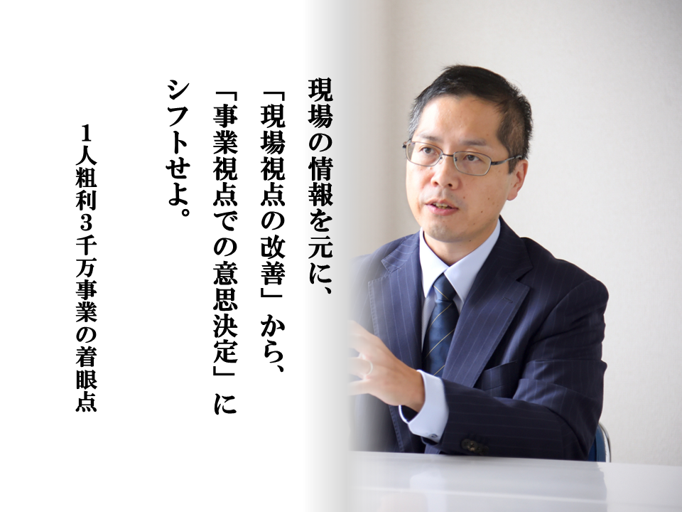 しかし、それだけでは会社のステージは変わりません。いくら現場を改善しても、そもそもの収益構造が弱ければ、利益は大きく伸びません。会社がより高い利幅を生み出し、社長の描く長期構想に近づくためには、現場情報を拾い上げ、それを「事業づくり」に活かす必要があります。